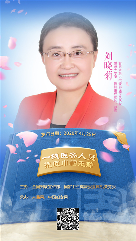 1963年11月生,女,漢族,中共黨員,甘肅省第六批援鄂醫(yī)療隊(duì)隊(duì)長(zhǎng),蘭州大學(xué)第一醫(yī)院主任醫(yī)師、教授。