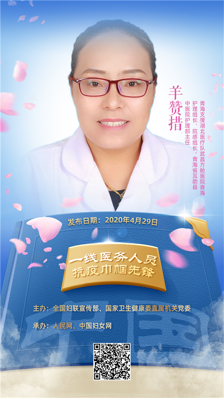 1974年7月生,藏族,本科學(xué)歷,九三學(xué)社會(huì)員,青海省互助縣中醫(yī)院護(hù)理部主任,青海支援湖北醫(yī)療隊(duì)武昌方艙醫(yī)院青海護(hù)理組長、院感組長。