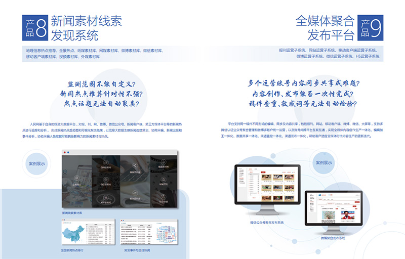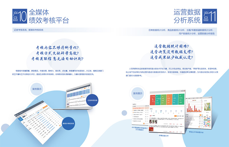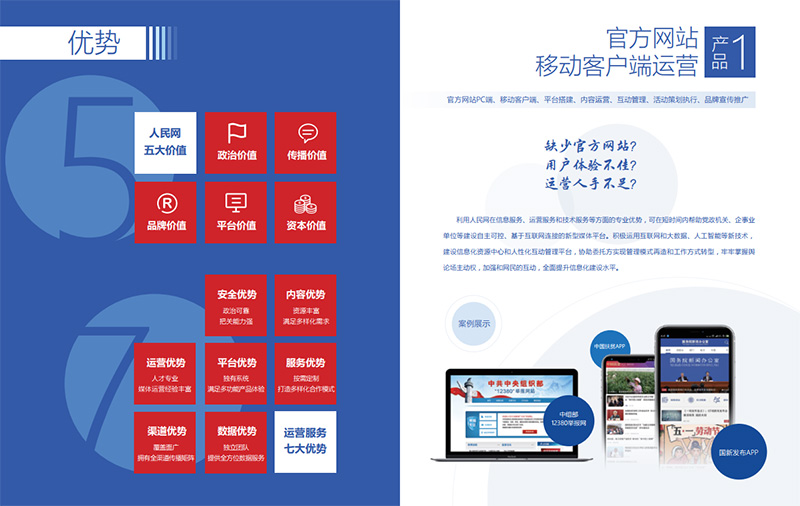 人民運(yùn)營不是傳統(tǒng)運(yùn)營業(yè)務(wù)的延伸,而是全新的業(yè)務(wù)升級。新的內(nèi)容運(yùn)營團(tuán)隊(duì)將提供包括信息發(fā)布、平臺(tái)運(yùn)維、監(jiān)督管理、形象宣傳、對外傳播等在內(nèi)的全方位服務(wù),業(yè)務(wù)涵蓋多語種網(wǎng)站建設(shè),微博、微信、客戶端建設(shè)與運(yùn)維,抖音、臉譜、推特等海內(nèi)外社交媒體賬號運(yùn)營,原創(chuàng)內(nèi)容生產(chǎn)制作、線上線下主題活動(dòng)策劃執(zhí)行以及技術(shù)平臺(tái)開發(fā)、大數(shù)據(jù)產(chǎn)品等13類產(chǎn)品模式。因此,我們的運(yùn)營服務(wù)不僅是PC端的,更是移動(dòng)端的;不僅是人工的,更是智能的;不僅是前端呈現(xiàn)的,更是后臺(tái)支撐的;不僅是面向國內(nèi)的,更是面向全球的。促進(jìn)“政企服務(wù)”和“新媒體”的有機(jī)融合,為黨政信息化全面賦能,激發(fā)政企新媒體正能量,人民運(yùn)營具有以下幾方面的能力與優(yōu)勢。