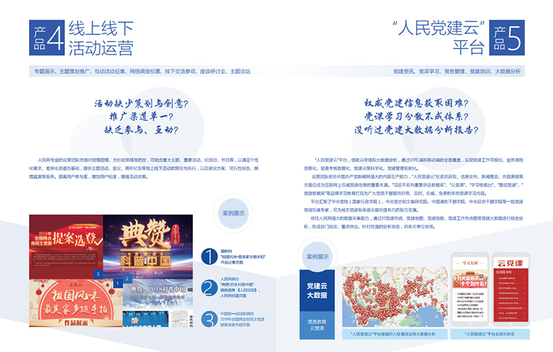 作為黨和國家治國理政的重要資源和手段,作為網(wǎng)上的人民日報(bào),人民網(wǎng)一直積極探索如何利用互聯(lián)網(wǎng)做好黨務(wù)、政務(wù)服務(wù),對外講好中國共產(chǎn)黨和中國故事。人民網(wǎng)創(chuàng)辦的“人民黨建云”“地方領(lǐng)導(dǎo)留言板”等欄目,為各地黨政領(lǐng)導(dǎo)干部與網(wǎng)民交流提供平臺(tái),已成為備受信賴的黨群、干群溝通橋梁,成為領(lǐng)導(dǎo)干部踐行網(wǎng)上群眾路線的生動(dòng)樣本,也形成了“互聯(lián)網(wǎng)+黨務(wù)+政務(wù)”服務(wù)的有效模式。與此同時(shí),人民網(wǎng)貫徹中央關(guān)于黨政信息化工作的指導(dǎo)精神,通過提供內(nèi)容運(yùn)營服務(wù)的方式,與各級黨政機(jī)關(guān)、企事業(yè)單位合作共建網(wǎng)站、兩微一端等政務(wù)新媒體平臺(tái)。先后承建了“中組部12380舉報(bào)網(wǎng)”“中宣部全國哲學(xué)社科規(guī)劃網(wǎng)”“中央和國家機(jī)關(guān)工委旗幟網(wǎng)”等多個(gè)部門網(wǎng)站,承接運(yùn)營了中央統(tǒng)戰(zhàn)部官方微信“統(tǒng)戰(zhàn)新語”、國務(wù)院新聞辦公室“國新發(fā)布”客戶端、國務(wù)院扶貧辦公室官方微信、微博和客戶端等移動(dòng)新媒體平臺(tái)。與近百家黨政機(jī)關(guān)、大型企業(yè)和行業(yè)協(xié)會(huì)、高校等開展了卓有成效的合作,積累了豐富的內(nèi)容運(yùn)營經(jīng)驗(yàn)。此外,人民網(wǎng)還代運(yùn)營眾多機(jī)構(gòu)的海外社交媒體賬號,彈奏出匯聚中國好聲音的交響樂章。